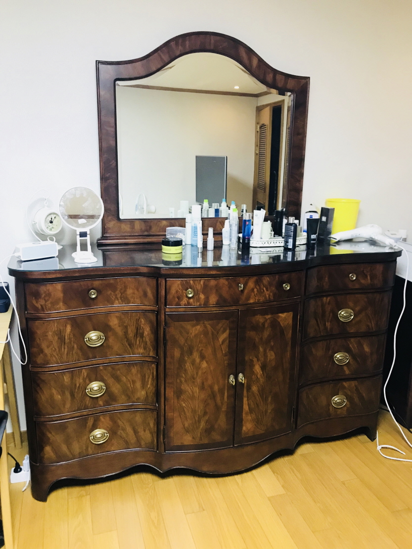 화장대는 대략 가로180센티 세로 2미터 정도 이구