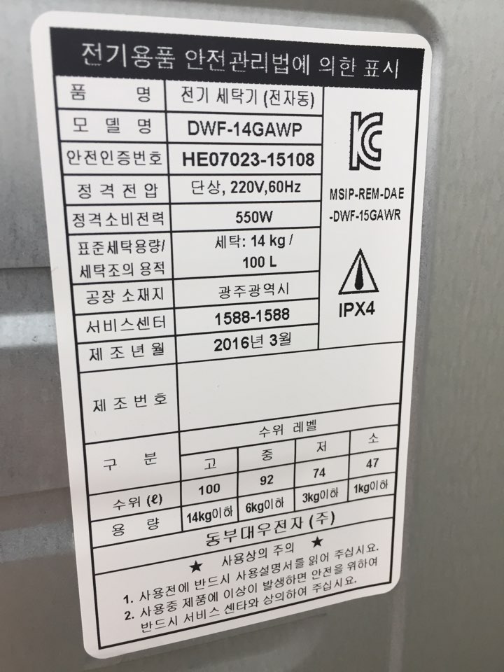 동부대우 세탁기 매입 문의 드립니다. 2016년도 5월에 구매한 제품이고요 이번에 이사를 가게 되어서 건조 일체형 세탁기를 사는 까닭에 놓을 공간이 없어 판매하려고 합니다.