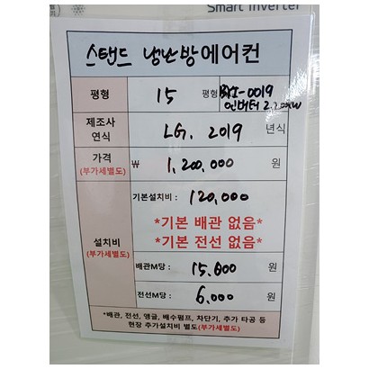 15평, LG, 2019년, 인버터2.2키로, BYI-0019, 설치비 별도